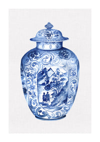 Chinoiserie Ginger Jar on Linen IV - Art Print
