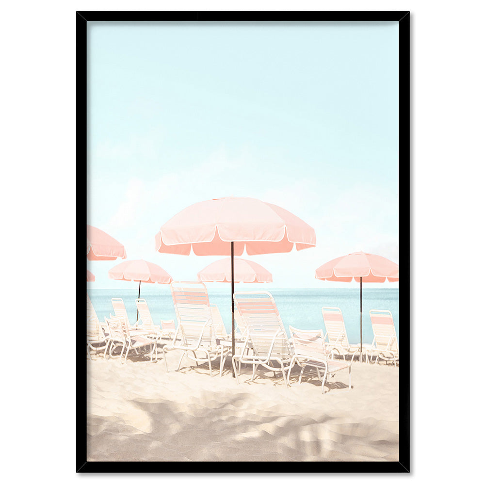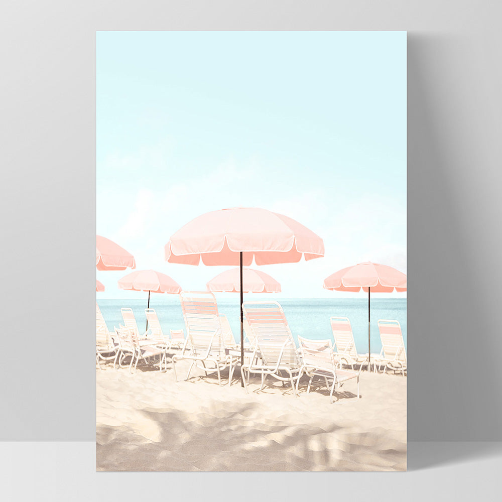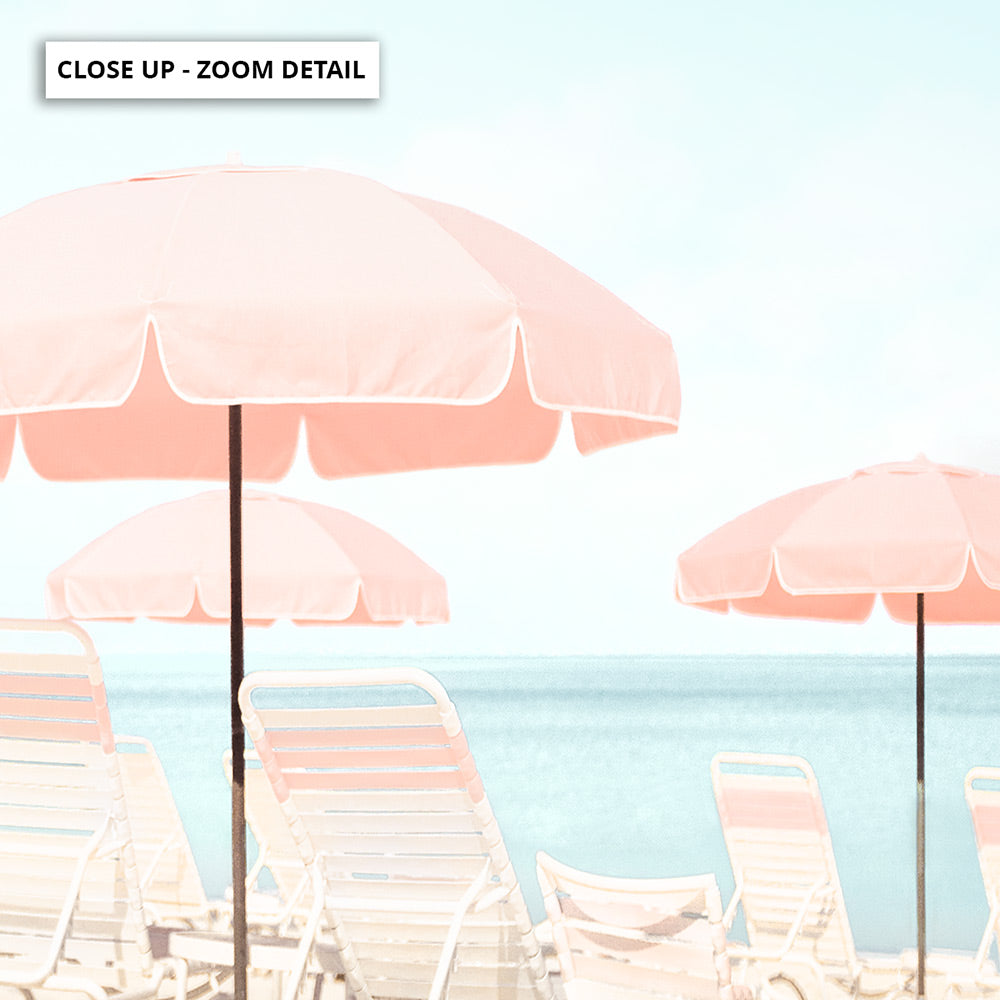 Pink Parasol Beach View - Art Print
