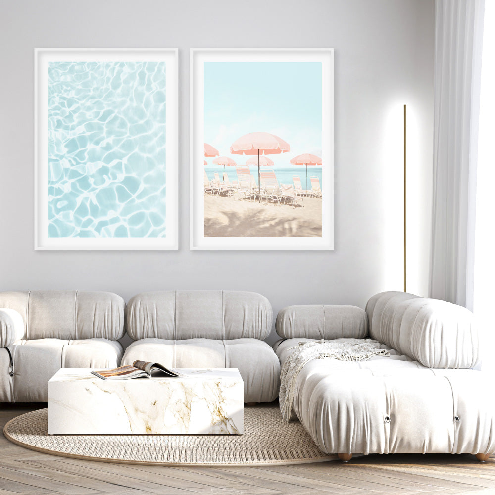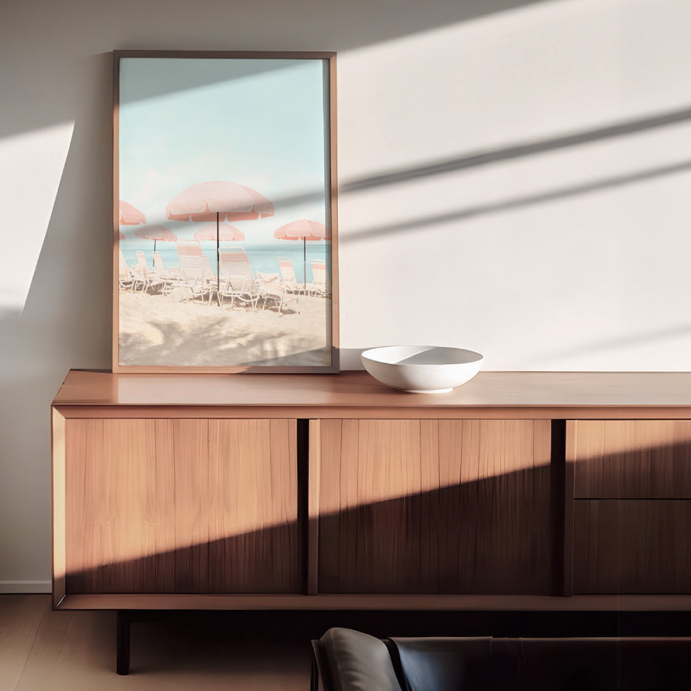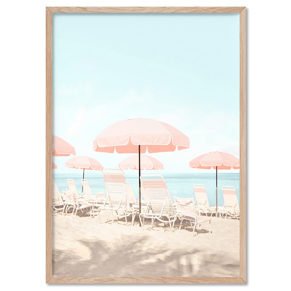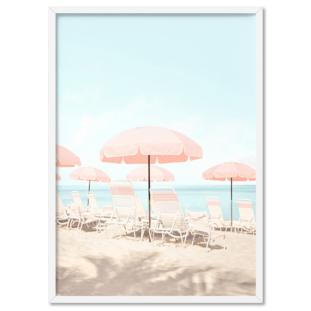Pink Parasol Beach View - Art Print